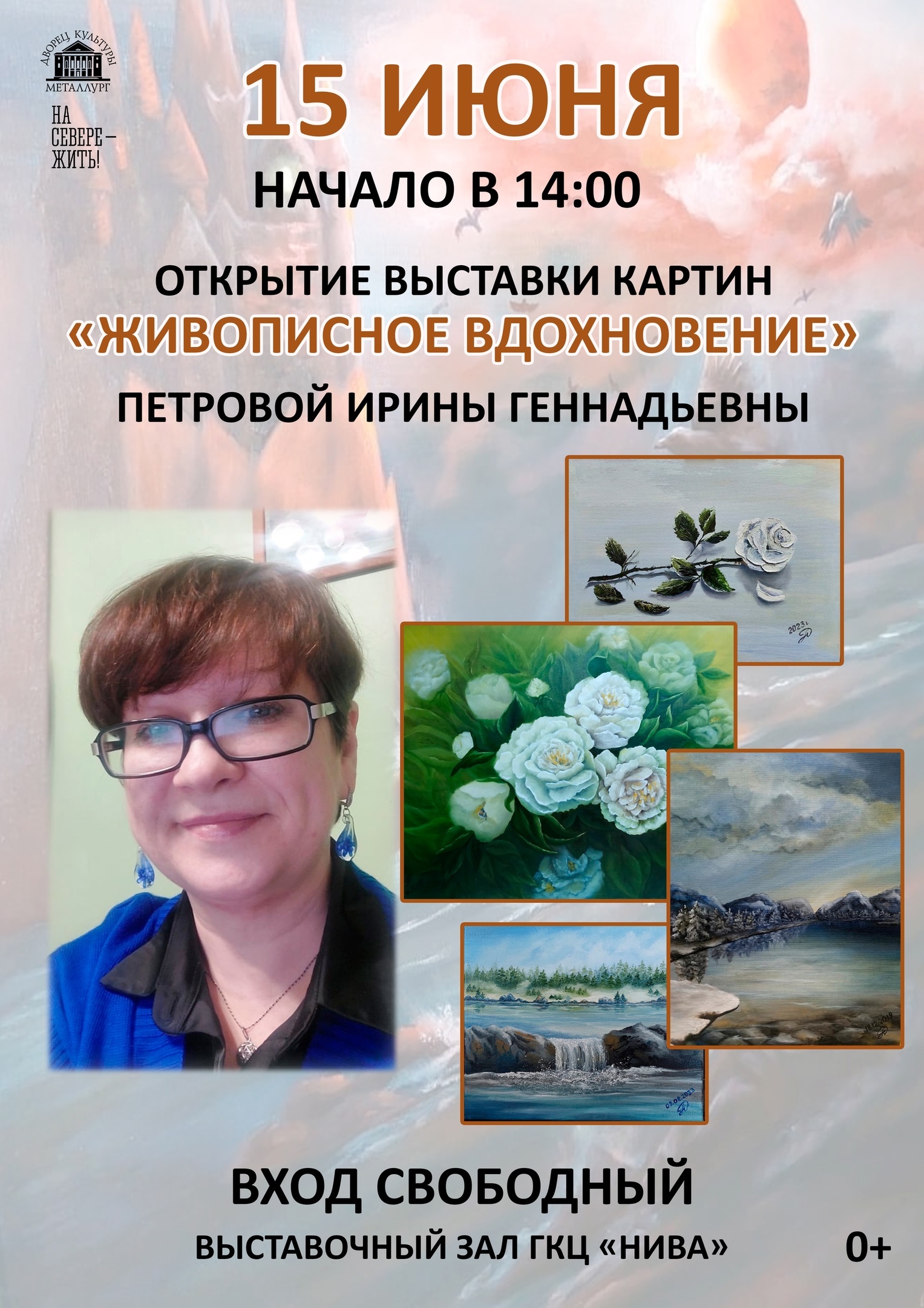 15 июня в 14:00 приглашаем всех желающих на торжественное открытие выставки «Живописное вдохновение» Ирины Петровой!