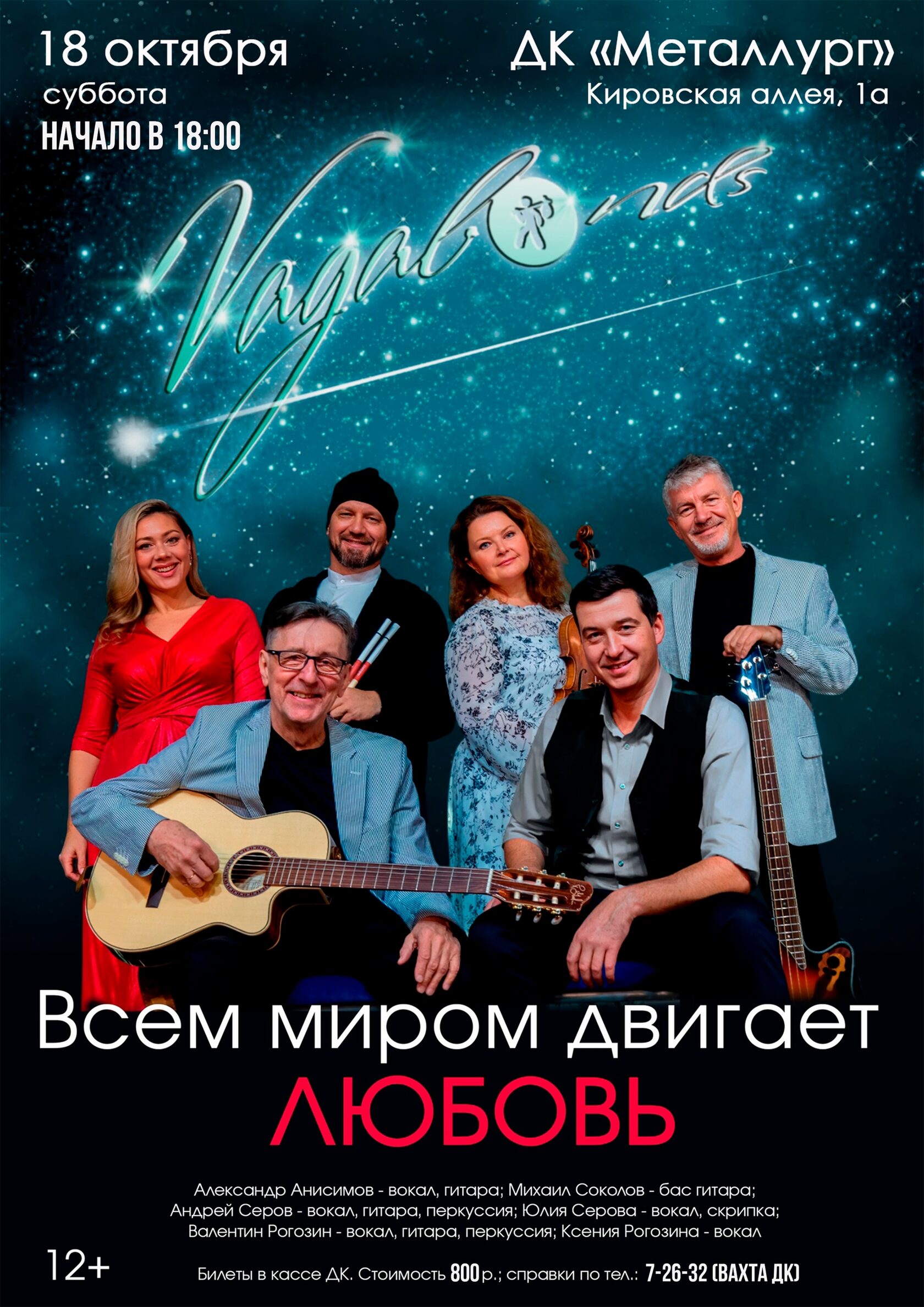 18 октября ДК «Металлург» приглашает всех поклонников качественной музыки на концерт группы «Бродяги» «Всем миром двигает ЛЮБОВЬ».