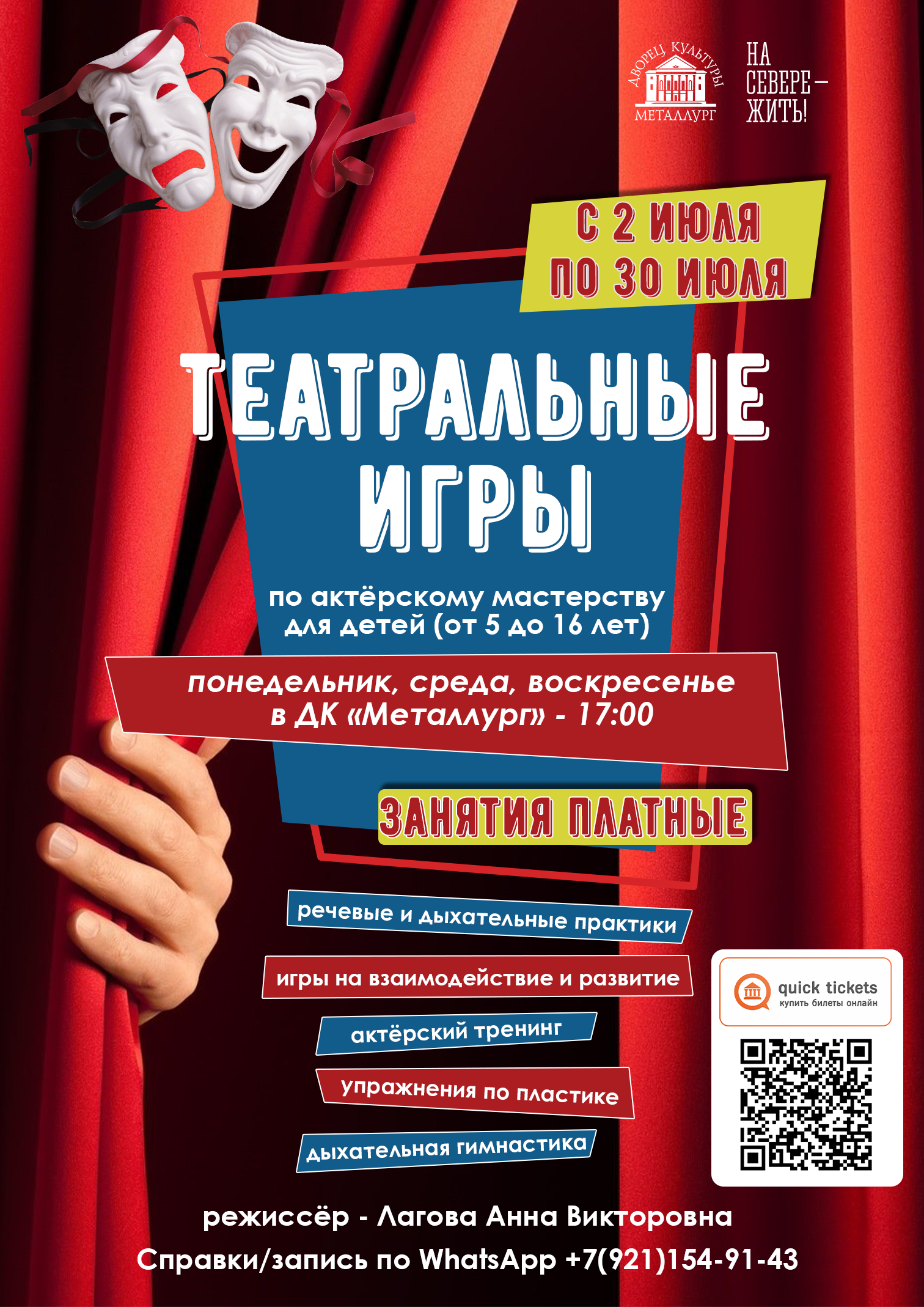 Опытный режиссер, она не просто видит личность в каждом ребенке — Анна Викторовна способна раскрыть потенциал и лучшие личностные качества каждого, кто приходит к ней на занятия.