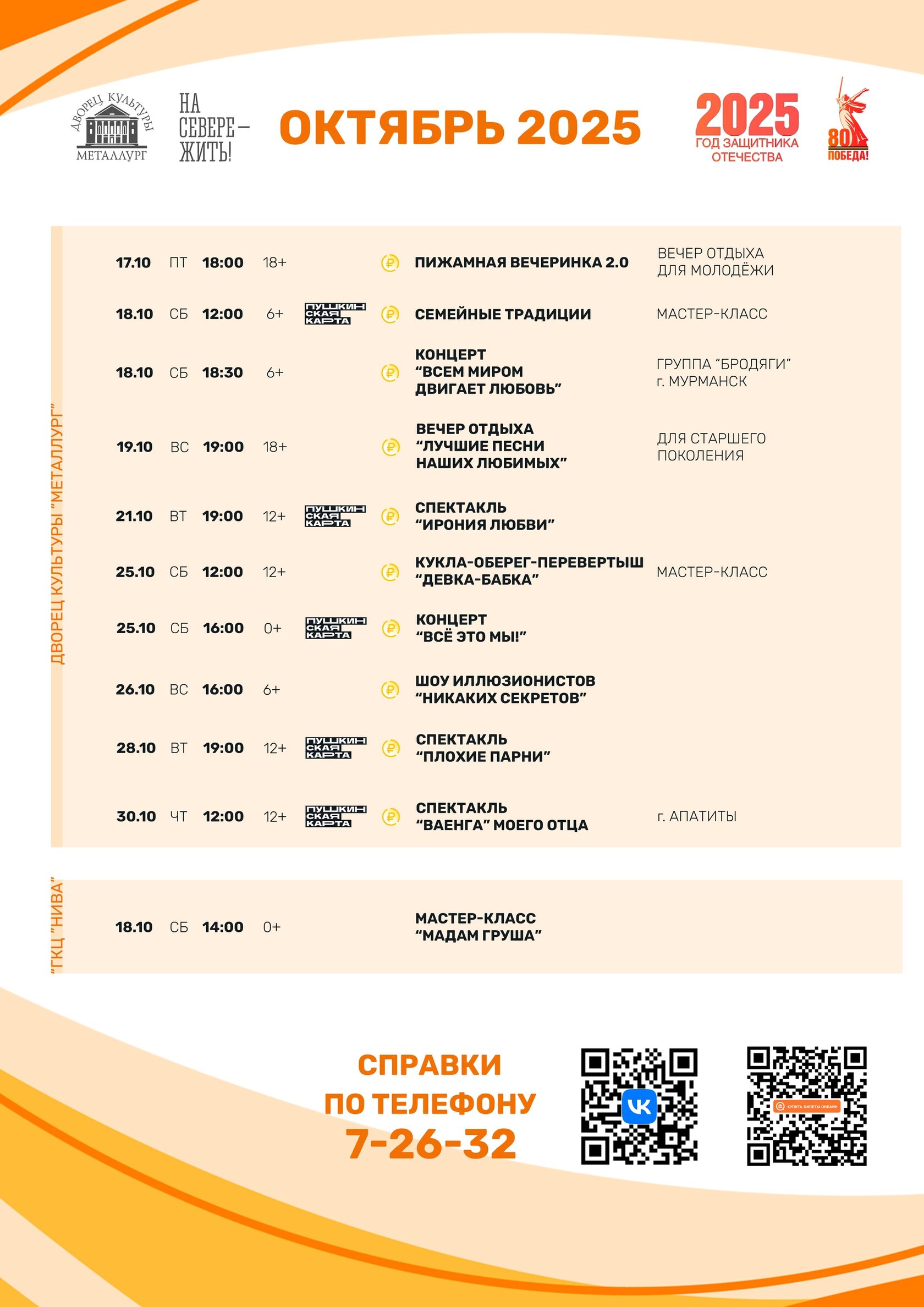 Друзья, для вашего удобства представляем афишу с перечнем мероприятий в октябре 2025 года.